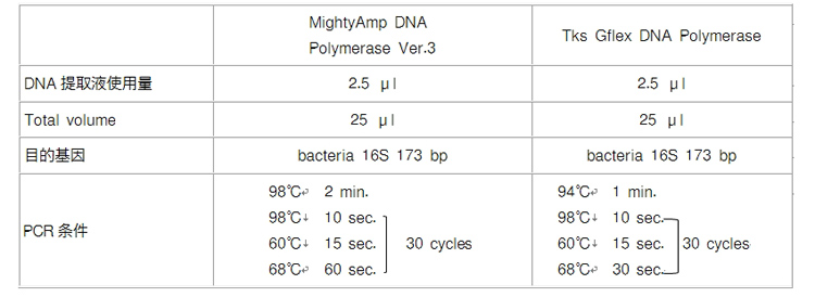 · MightyAmp DNA Polymerase Ver.3(Code No. R076A/B) · Tks Gflex DNA Polymerase(Code No. R060A/B) |