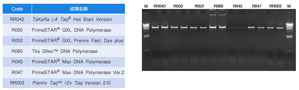 | 结果表明:TCH026与Takara 公司的常用end point PCR试剂搭配使用,基本均能获得目的片段,但与R060和R045的适配性较弱。 |